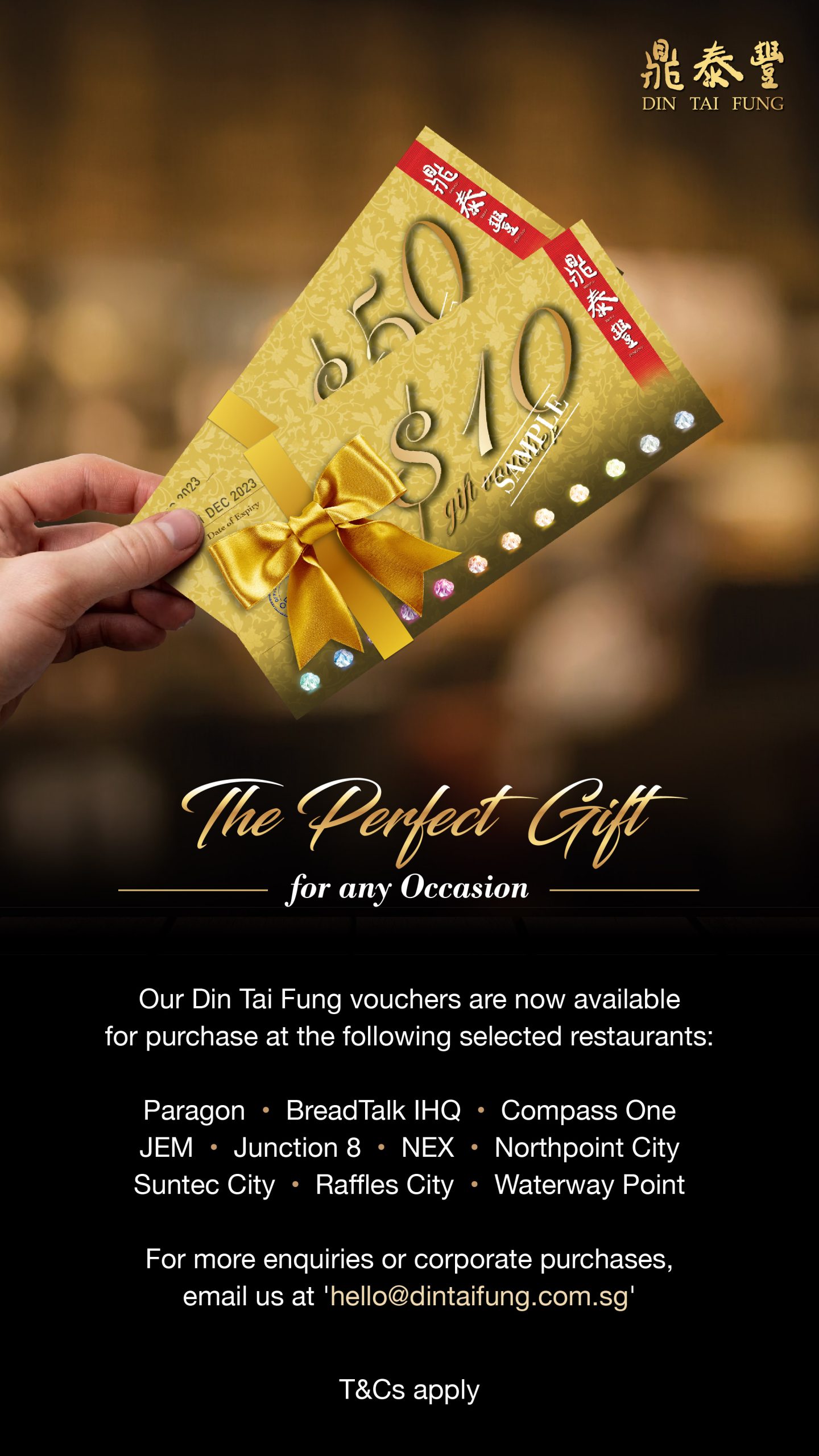 For any occasion worth gifting, Din Tai Fung gift vouchers are available for purchase now to instantly ✨ zhng up✨ any lackluster gifting.